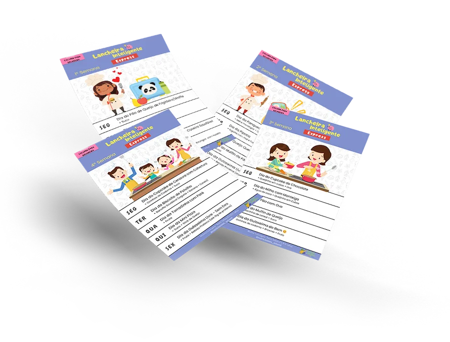 É só colar na porta da geladeira e seguir, sem precisar pensar todo dia. Tudo foi pensado pra facilitar sua rotina e tirar o peso das lancheiras da sua cabeça!