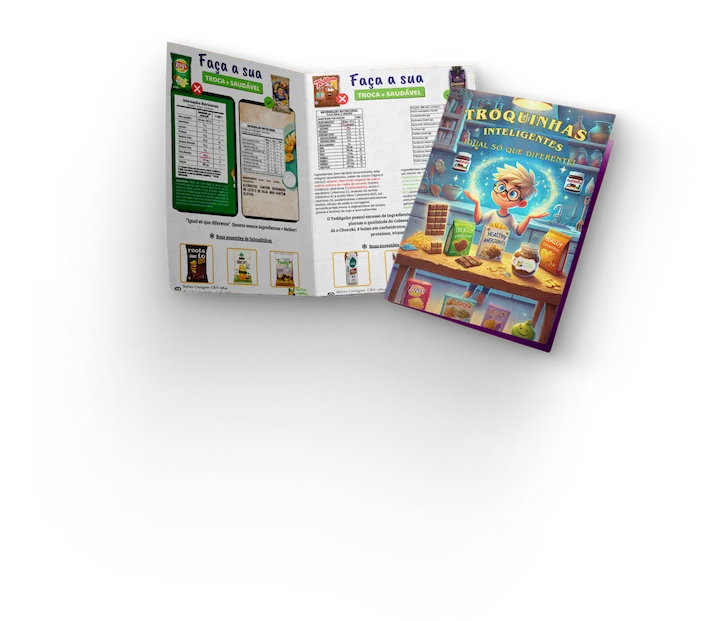 | Com o tempo | ❌ Cria vício em açúcar e farinha, altera exames, favorece doenças e ganho de peso. | ✅ Reeduca o paladar e fortalece escolhas saudáveis que se mantêm ao longo da vida. |